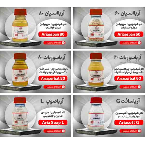 آریا شیمی رایکا - بابلینی - آرایشی - شوینده - هتلی - مواد اولیه صنایع شیمیایی - صابون جامد - شامپو - پودر لباسشویی - مایع دستشویی - سوربیتان - پلی اکسین اتیلن - گلیسرول - گلیسیرین - چیپس صابون - BUBLINY