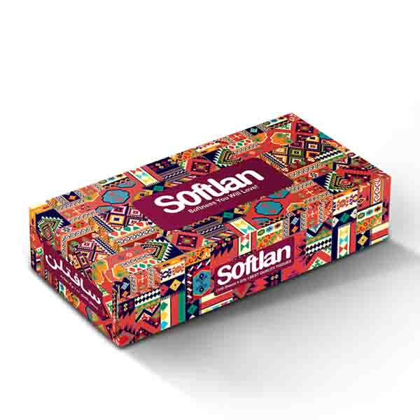 دستمال کاغذی جعبه ای 100 برگ سه لایه سفید سافتلن سری شطرنجی