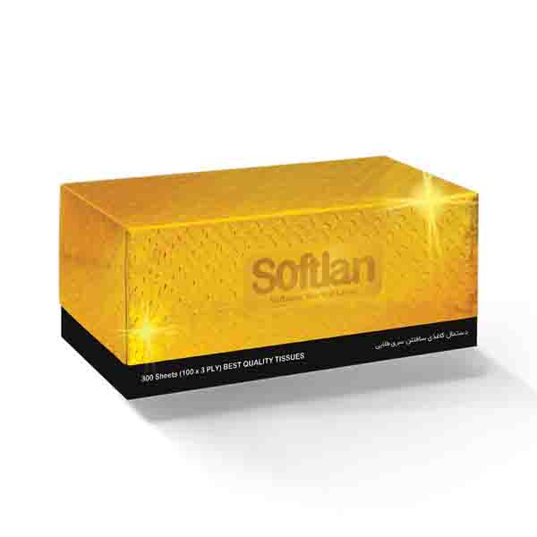 دستمال كاغذي جعبه اي سافتلن 100برگ سه لایه سفیدطرح طلايي