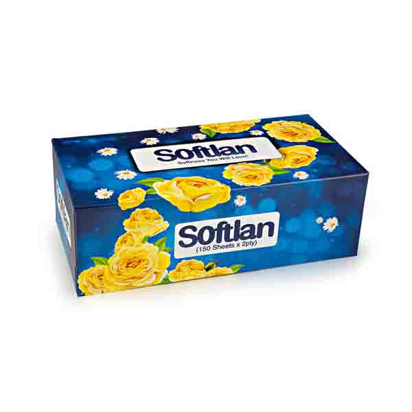 دستمال كاغذي جعبه اي سافتلن 150 برگ دولایه سفید سری پرنیان